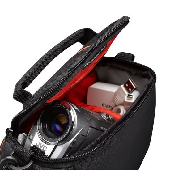 Brašna na videokameru s odděleným vnitřním prostorem pro nabíječku a náhradní baterii. Dvě postranní kapsy i vnitřní kapsa ve víku slouží pro další rozličné potřeby.