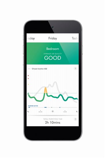 Automaticky detekuje hladiny znečišťujících látek PM2,5, PM10, VOC, NO2 a informace o těchto údajích o kvalitě ovzduší předává do aplikace. - Vytváří silný proud vzduchu.