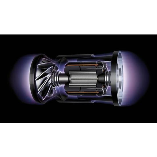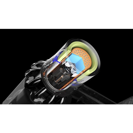 Motor, odpadní nádoba a cyklony jsou uspořádány v jedné přímce, takže vzduch je hnán do cyklon po přímé linii což vytváří o 20% větší sací výkon než u vysavače Dyson V8™.