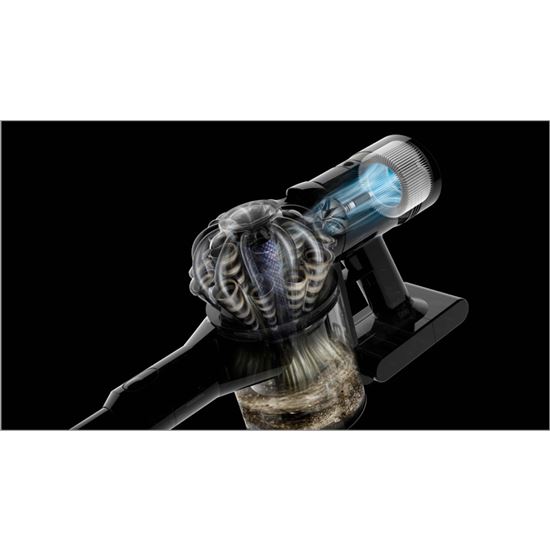 Dyson V8 je napájen Li-Iontovým akumulátorem s nikl-kobalt-hliníkovou elektrodou poskytujícím proud až na 40 minut provozu2 bez toho, aby klesal sací výkon. - Vysoce účinný filtrační systém s utěsněním celého spotřebiče