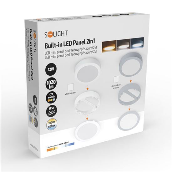 - panel disponuje speciálním LED zdrojem s přepínačem, který umožňuje nastavení teploty světla (chromatičnosti) 3000K, 4000K nebo 6000K. Současně je možné panel instalovat do podhledu, nebo vložit do rámu a namontovat přímo na strop.