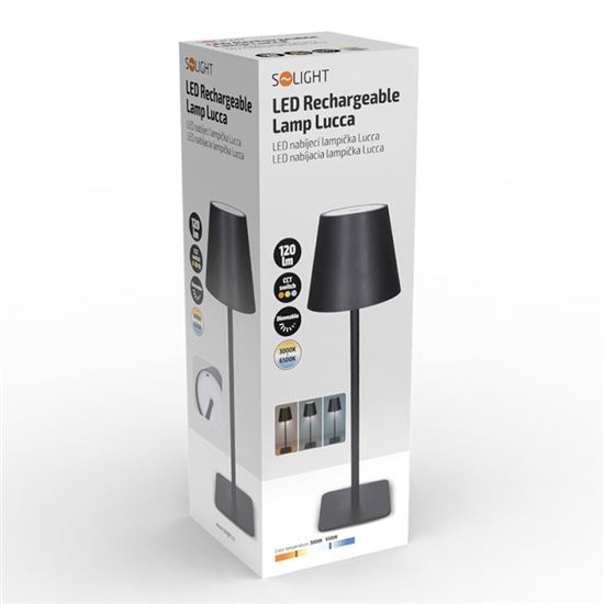 3D - Solight LED nabíjecí lampička Lucca, 120lm, změna CCT, stmívání, černáSolight LED nabíjecí lampička Lucca, 120lm, změna CCT, stmívání, černá