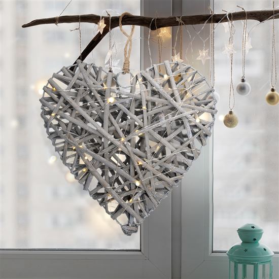 ratanové srdce s LED diodami