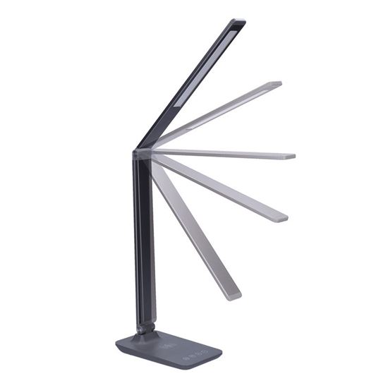 Prémiová hliníková stolní LED lampička s integrovaným bezdrátovým nabíjením přináší nejen stylové, ale i vysoce funkční osvětlení. Podporuje nabíjení chytrých telefonů pomocí Qi technologie (max. 5W) a nabízí také USB port (5V/1A) pro kabelové dobíjení. Ideální pro moderní pracovní stůl.