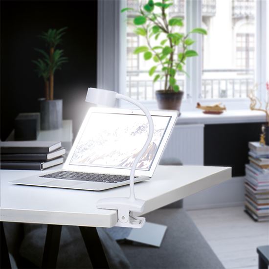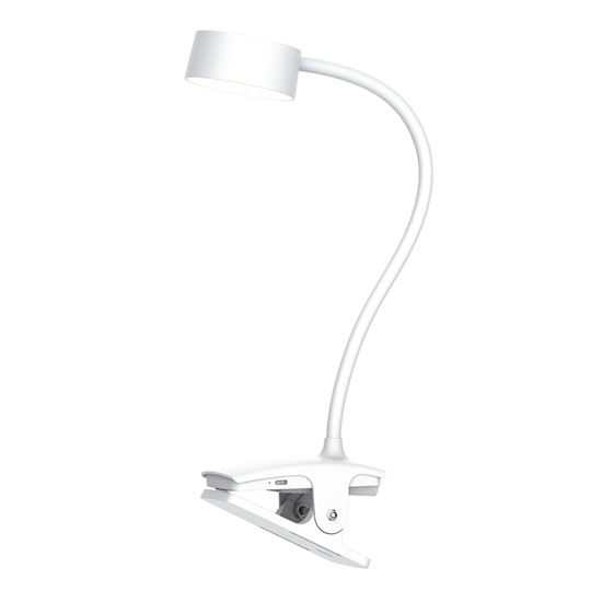 Bílá varianta nabíjecí lampičky s klipem kombinuje přenosnost, úspornost a jednoduché ovládání. Nabízí tři úrovně jasu, teploty světla (3000K/4000K/6500K) a výdrž až 3,5 hodiny na jedno nabití. Dotykové ovládání je intuitivní a příjemné na používání.