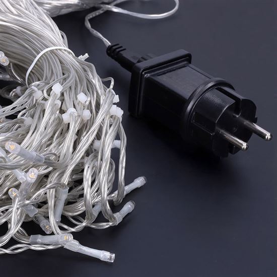 Oživte fasádu domu, balkon nebo pergolu světelným řetězem ve tvaru rampouchů s celkem 360 LED diodami v teple bílé barvě. Uspořádání světel do střídavých délek (24/56/32/48 cm) vytváří realistický efekt visícího ledu. Osvětlená část má délku 9 m, přívodní kabel měří 5 m a je zakončen transparentním vodičem, který nenarušuje vzhled dekorace.