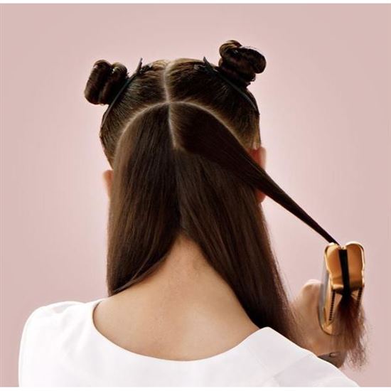 Termistory se skleněnými kuličkami umístěné v ramenech žehličky na vlasy regulují teplotu proudu vzduchu až 16krát za sekundu, aby se zabránilo extrémnímu poškození vlasů teplem a chránil se jejich přirozený lesk.
