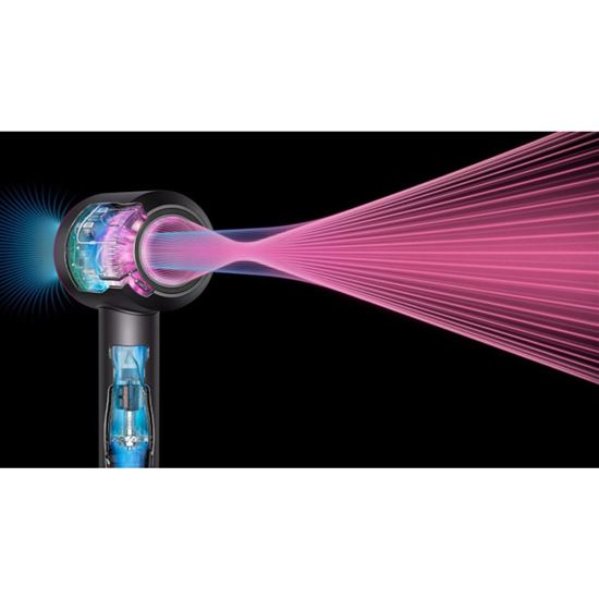 Malý, ale výkonný motor Dyson Hyperdymium™ generuje až 110 000 otáček za minutu, což vytváří silný a precizně řízený proud vzduchu pro mimořádně rychlé a efektivní vysoušení vlasů. Díky optimalizovanému proudění vzduchu jsou vlasy usušeny rovnoměrně, zůstávají lesklé a hladké, aniž by docházelo k jejich poškození nebo nadměrnému vysoušení. Tento motor poskytuje vysoký výkon potřebný pro rychlý styling i maximální kontrolu nad výsledkem.