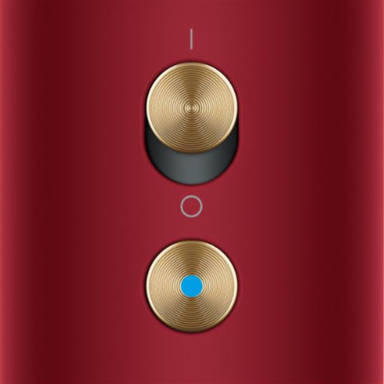 Tlačítko na ochranu pokožky hlavy Zapnuto - Automaticky sníží teplotu, když se vysoušeč přiblíží k pokožce hlavy Vypnuto - Ručně zvolte nastavení teploty Osvětlení kapsle se deaktivuje, pokud je režim ochrany pokožky hlavy vypnutý, když jsou nasazeny kompatibilní nástavce.