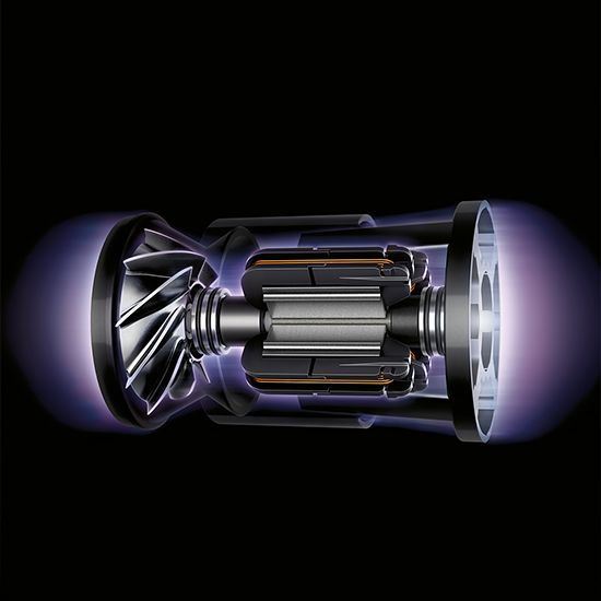 Tzv. "Point and shoot" uspořádání motoru, odpadní nádoby a cyklon umožňuje průchod vzduchu z podlahové hubice do cyklon v přímé linii. Toto provedení v kombinaci s výkonnějším digitálně řízeným motorem Dyson V10 zvyšuje v porovnání s vysavačem Dyson V8 sací výkon o 20 %. Aerodynamické uložení motoru reguluje proudění vzduchu okolo motoru, a snižuje tak hlučnost způsobenou turbulencemi. Díky speciálním materiálům absorbujícím vibrace, tlumicímu filtru za motorem a akustické přepážce, která zabraňuje šíření zvuku od jeho zdroje, došlo k výrazné redukci hlučnosti.