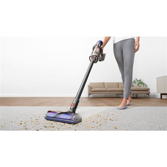 Tzv. "Point and shoot" uspořádání motoru, odpadní nádoby a cyklon umožňuje průchod vzduchu z podlahové hubice do cyklon v přímé linii. Toto provedení v kombinaci s výkonnějším digitálně řízeným motorem Dyson V10 zvyšuje v porovnání s vysavačem Dyson V8 sací výkon o 20 %.