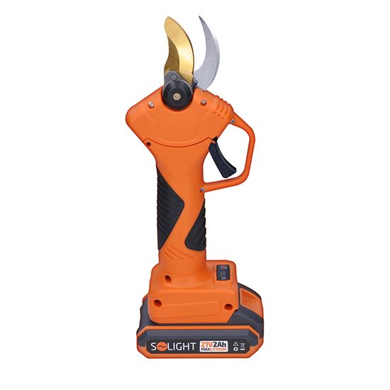 Akumulátorové zahradní nůžkyAkumulátorový střihací nůž s bezuhlíkovým motorem pro vysoký výkon a dlouhou životnost. Ideální pro prostříhávání větví s tloušťkou do 30 mm. Nože z kvalitní oceli a síla střihu 180 N. Nabízí čtyři nastavitelné režimy pootevření čelistí pro flexibilní použití. Hmotnost 1,2 kg s baterií, protiskluzový povrch a elektronický zámek proti náhodnému spuštění zajišťují pohodlné a bezpečné ovládání. Součástí balení: plastový kufr, 1x baterie 2Ah, nabíječka, návod a nářadí. Až 500 střihů na jedno nabití, doba nabíjení cca 150 minut. Napájení Li-Ion baterie 21V 2Ah, rozměry 30 × 12 × 8 cm.