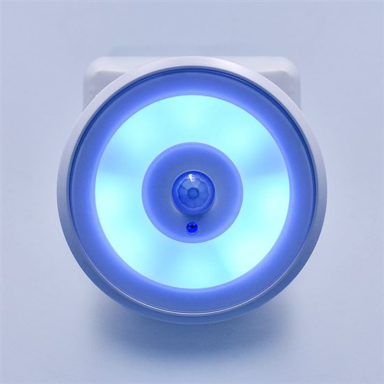 • noční světélko svítí bílou barvou, světelná signalizace zvonku je modrou barvou