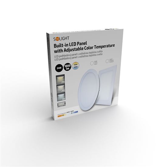 Elegantní čtvercový LED panel s výkonem 24 W a světelným tokem 1800 lm nabízí špičkové osvětlení s možností přizpůsobení teploty světla dle potřeby. Pomocí integrovaného přepínače lze volit mezi teplou (3000K), neutrální (4000K) a studenou bílou (6000K). Díky širokému úhlu svícení 160° je ideální pro prostornější interiéry jako jsou obývací pokoje, chodby či kanceláře.
