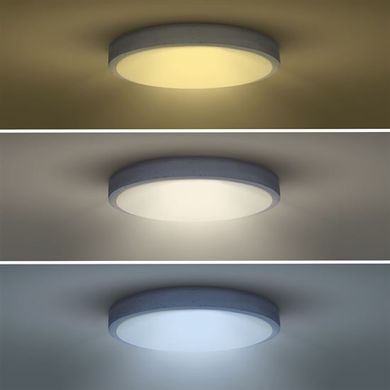 Velkoformátové stmívatelné LED svítidlo Grey o příkonu až 60 W a světelném toku 4200 lm (pro 4000K) zaujme nejen výkonem, ale i designem v imitaci šedého betonu. Nabízí možnost změny teploty chromatičnosti (3000K–6500K) a plynulého stmívání pomocí přiloženého dálkového ovladače. Díky širokému úhlu svícení 120° poskytuje rovnoměrné a intenzivní osvětlení i pro velké prostory.