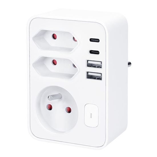 Tři zásuvky (1× 16 A + 2× 2,5 A) zvládnou celkovou zátěž až 3680 W a umožní připojit běžné spotřebiče v obýváku, ložnici nebo pracovně. Zásuvky jsou navíc vybaveny dětskými pojistkami, což zajišťuje bezpečný provoz i v domácnostech s dětmi. Díky dvěma USB-A a dvěma USB-C portům můžete pohodlně nabíjet až čtyři zařízení současně. Power Delivery (PD) technologie výrazně zkracuje dobu, po kterou musí být přístroj v nabíječce. Perfektní pro veškerou USB elektroniku a váš čas.