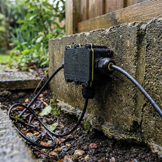 Rozšířená varianta vodotěsné propojovací krabičky s jedním vstupem a dvěma výstupy nabízí flexibilní možnosti zapojení – ideální např. pro větvení napájení v zahradních systémech, na terasách či u bazénů. Se čtyřmi kontakty a krytím IP68 poskytuje spolehlivou ochranu proti vodě a prachu.